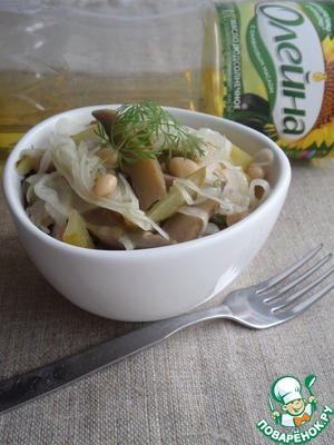 Очень хороший постный салатик! Делала раньше подобный, путём проб внесла изменения по количеству ингредиентов для себя лично, на 300 г капусты я беру 100 г грибов, 100 г огурцов и 4 ст. л. фасоли, сегодня фасоль заменила зелёным горошком, тоже очень вкусно! Зелень добавляют сушеную пажитника. Большое спасибо за рецепт!