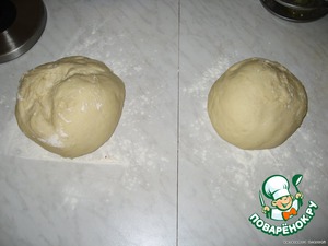 Затем тесто обмять и оставить еще на 30 минут. Разделить на 2 части для приготовления.