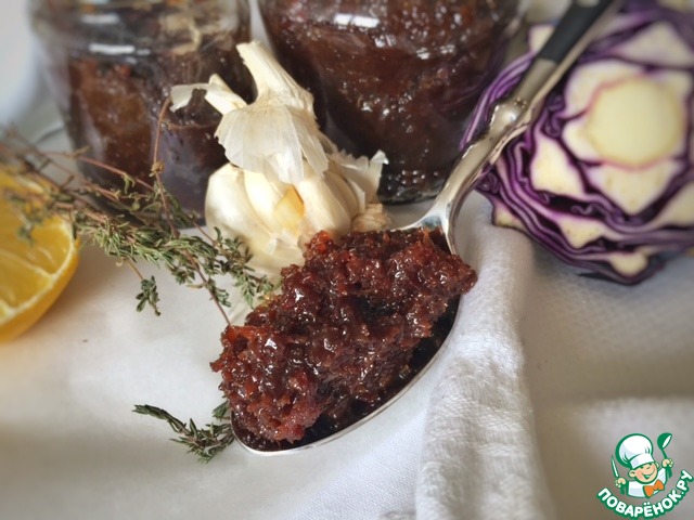 Удивительно вкусно,удивительно красиво,удивительно оригинально. По мере остывания , "варенье" становилось всё вкусней и вкусней. А если добавить (при подаче) капельку песто,то становится ещё вкусней. Ну очень удачный рецепт.