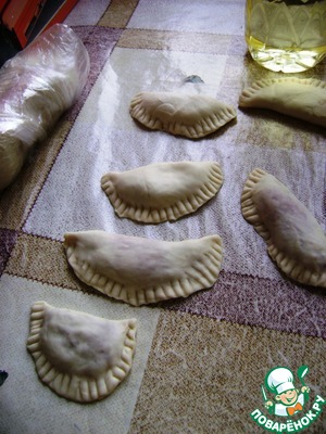 Слепить чебуреки и пройтись по краю вилкой, скрепляя края как следует.