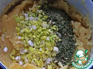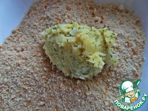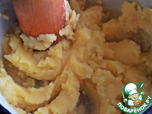 Ложку с горкой пюре обвалять в муке или сухарях.