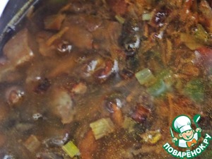 Развести муку с водой и влить, помешивая, в горячий соус.