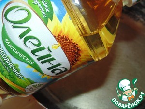 В сковородку налить растительное масло Олейна. И обжарить лук до прозрачности.