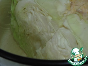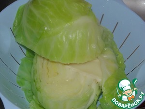 Капусту разрезать на 4 части, кочерыжку не вырезать. Опустить в кипящую воду и варить 10 минут. Если капуста зимняя, то 15-20 минут.