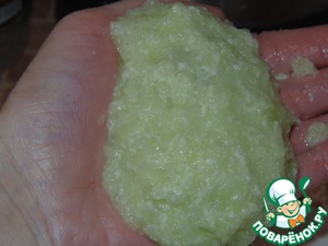 Одну столовую ложку капустного фарша выложить на руку и сформировать лепешку.