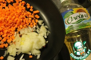 • Лук и морковь нарезать мелкими кубиками, обжарить в масле до слегка золотистого цвета.