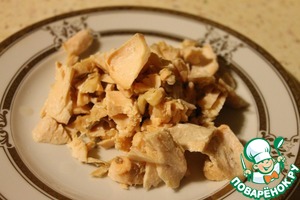 • Далее, снять с отварной рыбки всю мякоть и добавить ее в кастрюлю.