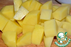 Картофель очистить и нарезать брусочками или крупным кубиком.