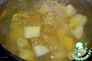 После того как нут закипит, убавить огонь и дать ему провариться 30-40 минут. Затем добавить картофель.