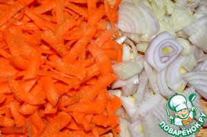 Лук и морковь очистить. Лук измельчить, морковь натереть на крупной терке.