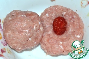 Разделить фарш на четыре части по 50 г каждая. Сформировать кюфту и начинить ее кизилом. Кюфту можно отварить отдельно и добавить в не постный вариант супа или же разлить суп по двум кастрюлям и в одной отварить кюфту, тогда суп будет еще насыщенней.