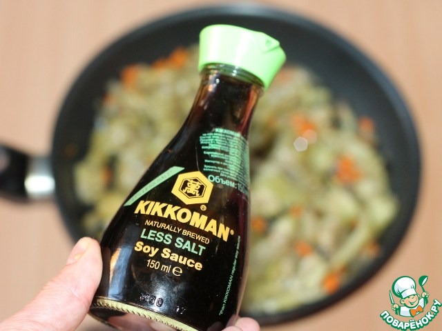 4. Добавляем к овощам соевый соус,