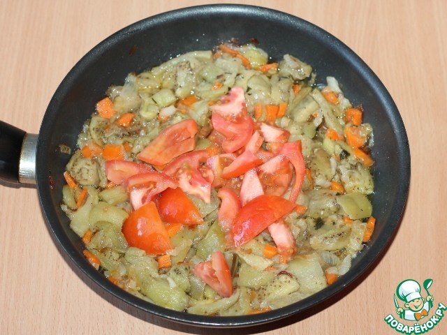 3. Баклажаны перекладываем в сковороду и обжариваем с пассеровкой.