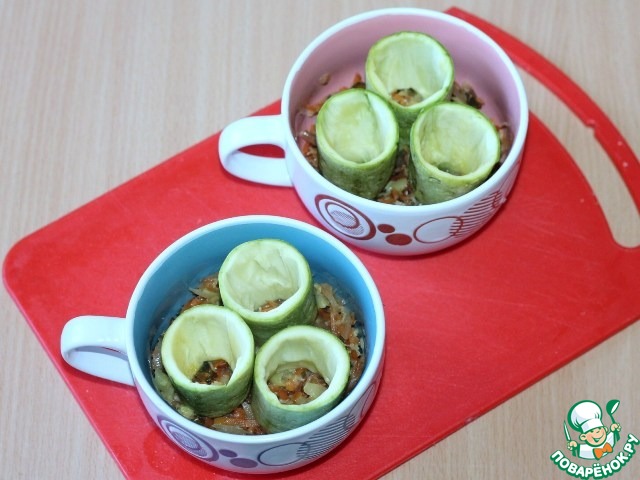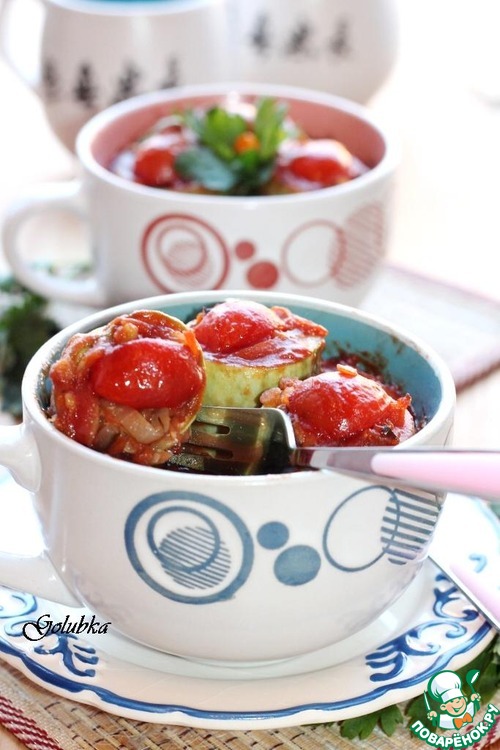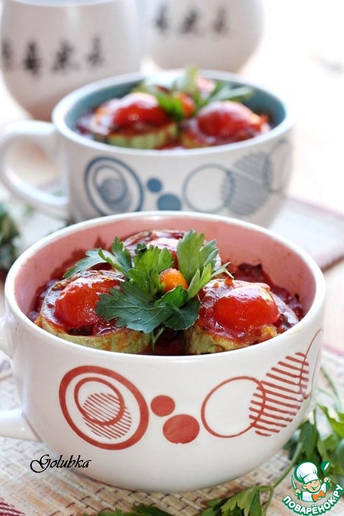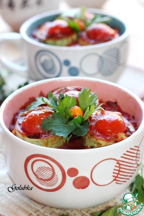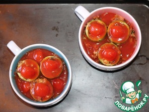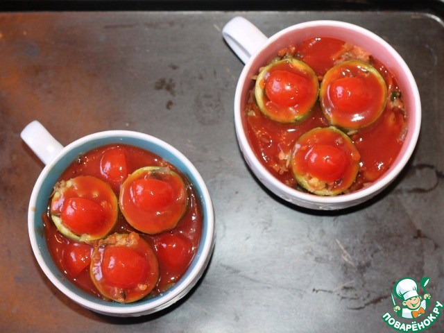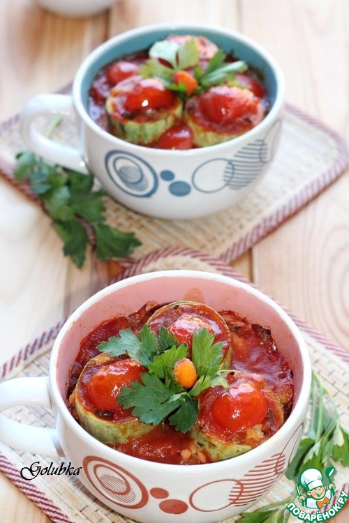 Рецепт «Кабачки, фаршированные овощами, в томатном соусе»: