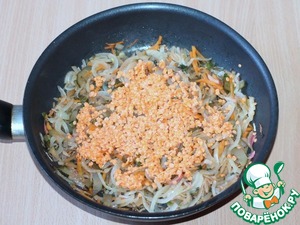 2. Лук и чеснок очистить, тонко нарезать, обжарить в подсолнечном масле до золотистого цвета.