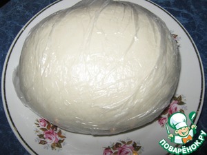 Доску подпылить мукой, положить тесто, накрыть пленкой и убрать в холодильник на 30 минут.