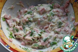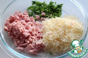 Сыр натереть на мелкой терке. Колбасу нарезать мелкими кубиками. Зелень измельчить.
