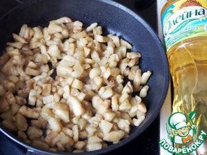 Мякоть баклажан порезать кубиками и обжарить на растительном масле (2 ст. л.) до мягкости.