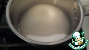 • И в это в это время варим сироп. В кастрюльку высыпаем стакан сахара, вливаем 5 ст. л. воды, не перемешиваем, и на медленном огне доводим до кипения, вливаем 1-2 ст. ложки сока лимона и кипятим на том же медленном огне примерно минут 15. Сироп должен стать совсем немного тягучим.