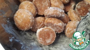 • Пряники из первого противня выкладываем в металлическую посуду (достаточно большого размера) заливаем половиной сиропа и начинаем аккуратно и медленно перемешивать. Оставшийся сироп оставляем на медленном огне. Можно конечно и все пряники за один раз перемешать с сиропом, но так сложнее и тяжелее.