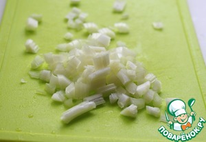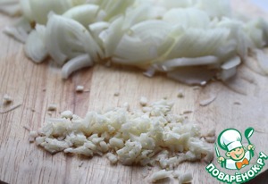Лук нарезать тонкими полукольцами, чеснок мелко измельчить.