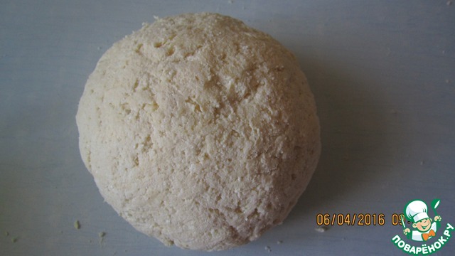 Вымесить тесто. Тесто сначала будет крошиться, но потом оно получается мягкое, приятное на ощупь