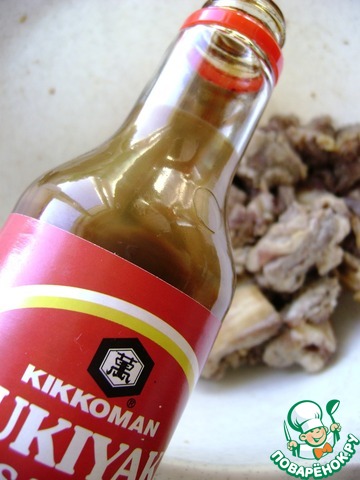 • Ребрышки нарубить удобными кусочками, промыть и залить холодной водой, чтобы покрылись. Довести до кипения, проварить минут 5 и слить воду. Обcушить и еще горячие залить соусом Sukiyaki ТМ «Киккоман», оставить мариноваться на пару часов.