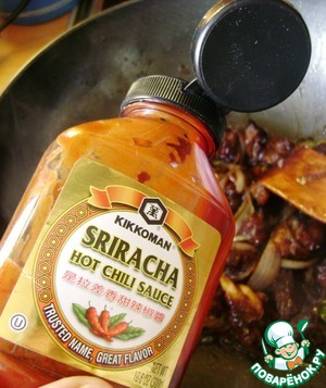 • Добавить перечный соус Sriracha ТМ «Киккоман», хорошо перемешать и снять с огня.