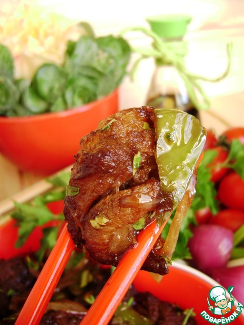 Погода у нас отвратительная. Ветра дуют сумасшедшие. Зелени еще и в помине нет. А душа ведь просит пикника, природы, праздника! Шашлыков охотааааа!!! Ну, с мангалом в квартире сложно, зато вот мясо с «Киккоманом» - это легко и вкусно!