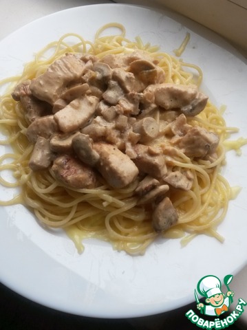 Рецепт «Паста с курицей и грибами в сливочном соусе»: