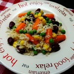 Фасоль с замороженными овощами и рисом