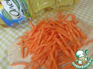• Морковь помыть, почистить, нарезать соломкой (я воспользовалась теркой для корейской моркови).
