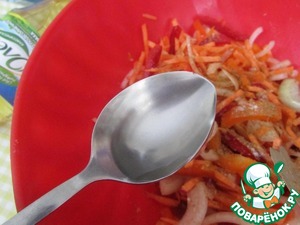 • Затем влить уксус и хорошо все перемешать. Остроту хе можно регулировать по своему вкусу.