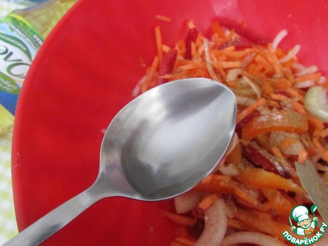 Закуска просто офигенская! Я пока ее перемешивала в процессе остывания, ложек десять умяла. Просто очень вкусно, особенно для любителей остренького! Рекомендую!!! Спасибо автору за рецепт.