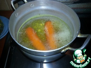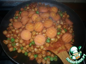К нуту добавить порезаную морковь, и немного замороженного зеленого горошка (для яркости)