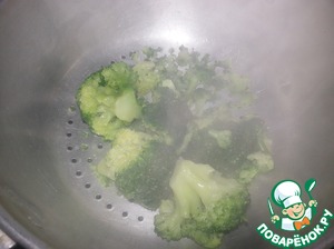 Отварить брокколи в кипящей подсоленой воде, разобрать на соцветия