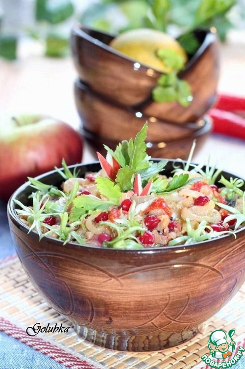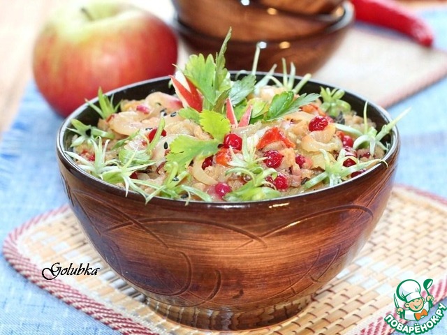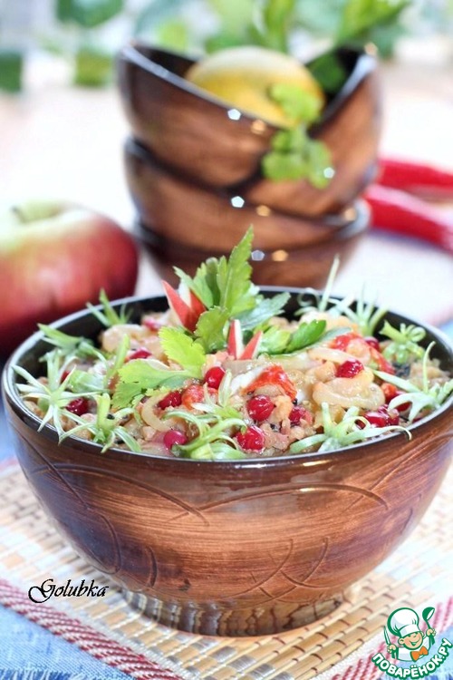 - Орехи (ядра грецких орехов или арахиса, обжаренные) — 2 ст. л.