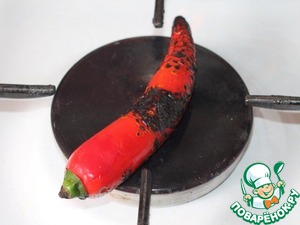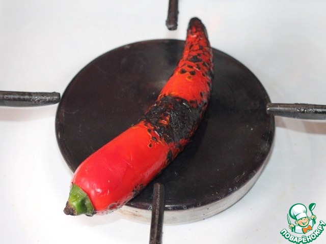 1. Готовим соус. Перец чили (большой стручок) запечь в духовке или на конфорке, остудить и снять кожицу, порезать соломкой. -