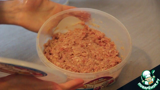 • Накрываем ёмкость с фаршем крышкой и ставим в холодильник на 15-20 минут.