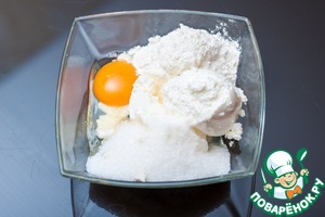 • Для чизкейка смешать сахар, сливочный сыр, яйцо и муку.