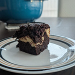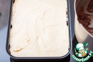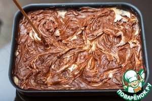 • И на него - остатки теста для брауни. Палочкой сделать разводы в тесте.