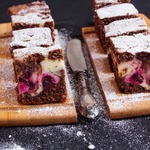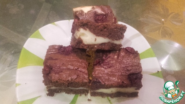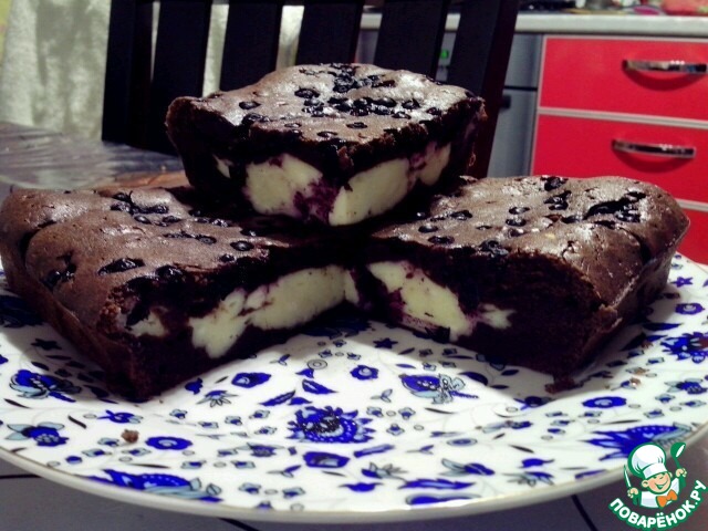 Это очень и очень вкусные брауни. Я вообще не любительница таких компактных пирогов, но брауни по этому рецепту получается очень нежным и мягким. А прослойка с крем-чизом преподносит дополнительную нежность, а также праздничность. Из ягод брала замороженную малину, предварительно не размораживала. Да, делала на половину указанных ингредиентов. Очень вкусно, советую всем.