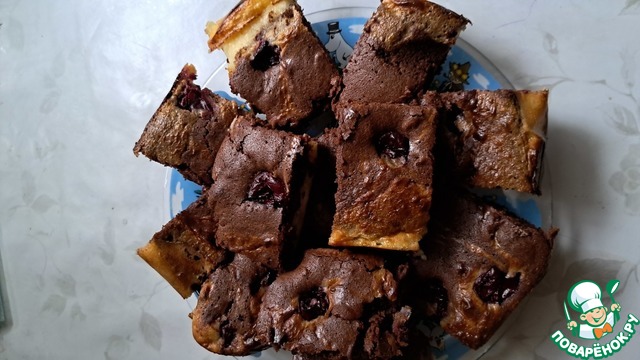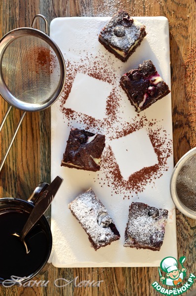 Выпекать 35-40 минут при 170С до сухой лучины. Охладить, нарезать на квадраты, присыпать сахарной пудрой.