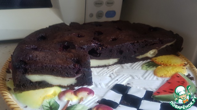 Благодарю за чудесный рецепт! Мягкий, нежный, шоколадный пирожок с ягодками Я делала с малиной и смородиной. С малиной, на наш вкус, вкуснее. Готовила в круглой форме половину порции, смотрится очень эффектно, надеюсь рецепт приживётся! Спасибо!