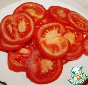 Сверху, укладываем половину луковицы, чтоб томаты получились как-бы "под прессом", да и сок луковички придаёт свою изюминку.