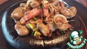 Залить бобы соусом, добавить черемшу и орешки, сверху посыпать сыром. Я использовала литовский аналог пармезана.