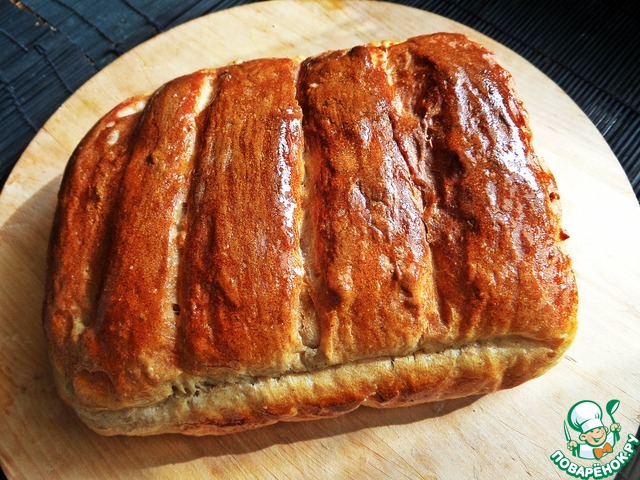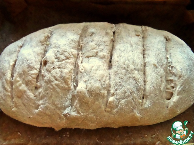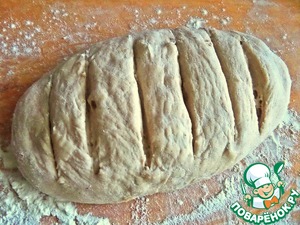 Перенести тесто на доску с мукой, сформировать батон, сделать надрезы.