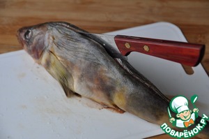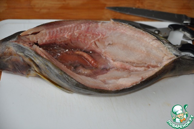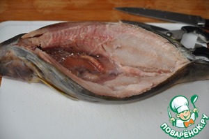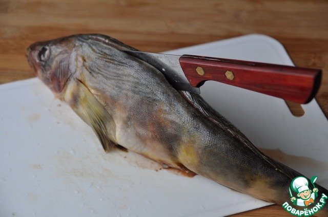 Рыбу моем, удаляем жабры, делаем острым ножом два продольных надреза вдоль хребта.
