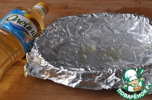 Смазываем фольгу подсолнечным маслом "Олейна". -