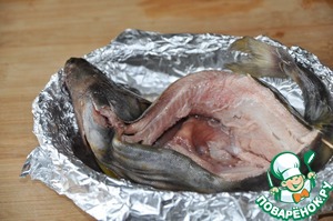 Берём удобную форму для запекания. Я, для удобства, чтобы потом не отмывать форму, застелила фольгой, кроме того, к фольге рыба практически не прилипает.